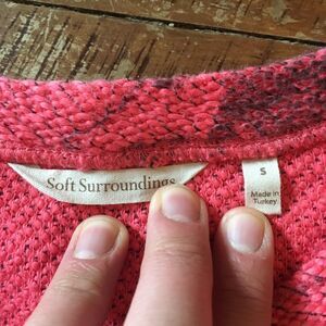 Soft Surroundings two tone, pink, floral, oversized, long sleeve top. In good, used condition. Approximately 19 inches from armpit to armpit, 24 inches long. From a pet and smoke free house. Happy to bundle!