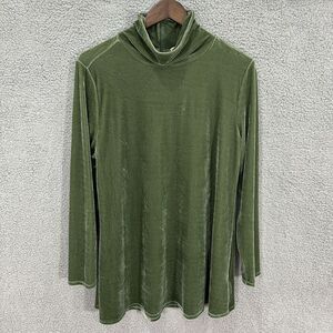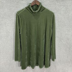 Soft Surroundings womens blouse large green turtleneck tunic shimmer long sleeve