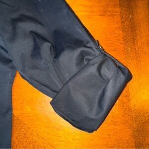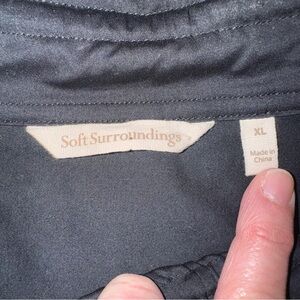 Soft Surrounds Long Roll Tab Sleeve Button Up Shirt Black w/ Ruffle Collar Sz XL in good preowned condition