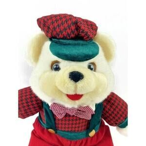 Soft Teddy Bear Plush Stuffed Animal 16" White With Red Green Outfit and Hat