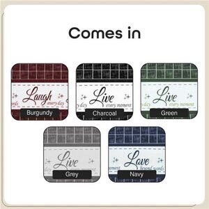 🧿Upgrade Your Home Decor: Features a design printed with the words; ‘Live, Love, Laugh’ surrounded by beautiful printed woven plaid.