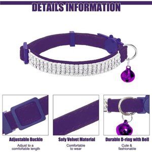 Soft Velvet Safe Cat Collars for Girl Cats -2 Pack Rhinestones Bling Diamante