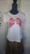 Soft White Shirt Sleeve Top with Pink Flamingos Pearls Accents