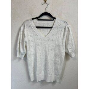 Soft White Short Sleeve Sweater Knit Sz Large Pretty V Neck