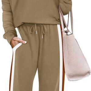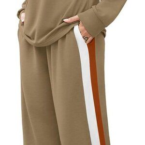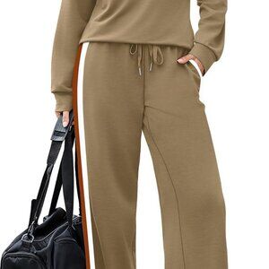 Features: Classic comfy set with long sleeve color block crewneck top and wide-leg drawstring pants featuring functional pockets and stylish long stripes on the sides. Perfect for lounging, outdoor activities, or a quick run. The stretch fabric keeps you comfortable whether relaxing or exercising.