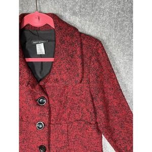 Soft Works Wool Blend 3 Button Knit Blazer Womens Size 10 Red Black 3/4 Sleeve