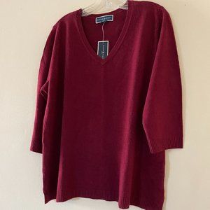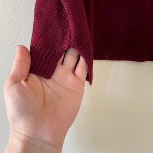 Burgundy V neck lux soft sweater with little openings on sides
