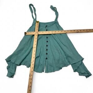 Soft and lightweight We The Free by Free People cami in a flowy teal blue shade, size XS. Features button front detail, raw edge straps, and a relaxed boho silhouett