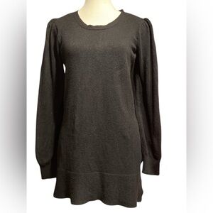 A soft, luxurious side-slit tunic sweater detailed with a feminine puff sleeve creates a flattering silhouette, especially when paired with a sleek legging or skinny jean.
