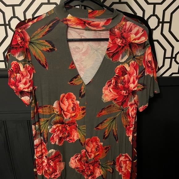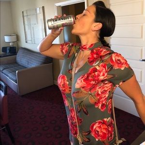 Soft blouse. Has the fabric around neck and then cut out. Very cute on. That’s the only picture I could find with it on 🤣 you’re welcome Smirnoff 😂🤪