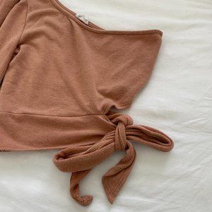 Soft brown one shoulder tie crop top