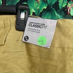 Soft by Avenue Linen Rayon Capri Pants Classic Fit Size 22/24 3X Plus Green Crop