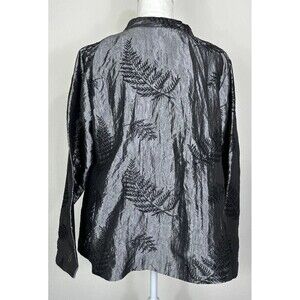 Soft by Avenue Open Front Metallic Gray Fern Embroidery Jacket