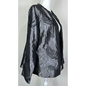 Soft by Avenue Open Front Metallic Gray Fern Embroidery Jacket Plus Size 14/16