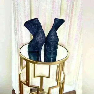 Soft fabric black with silver thread metallic booties.
