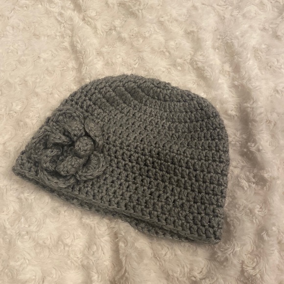 Super soft gray knit hat with knit flower