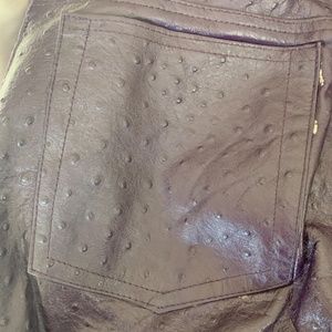 Soft ostrich embossed (dimpled) plum leather jeans by Swann. Medium