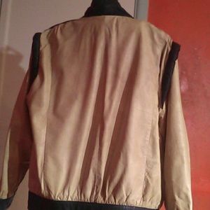 Very soft Carmel colored sheepskin with black trim on neck and around shoulders ...very galactic!
