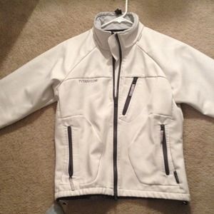 White with gray accents Columbia women's soft shell. Fantastic for outdoor activities, layering or a light jacket to protect from the elements.