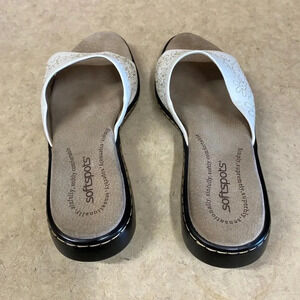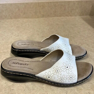 Soft spots White Leather Flower Design Mule Slide Sandals Size 9 Wide