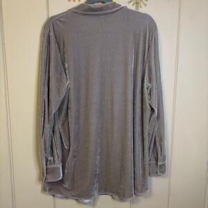 Soft surroundings Beige Velvet Button Down tunic Long Line Quiet Luxury Large