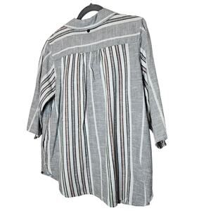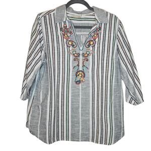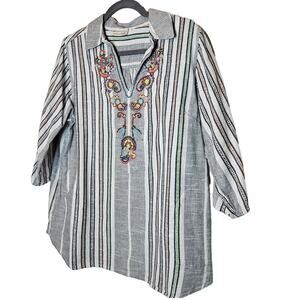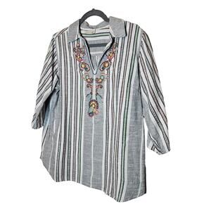 Soft surroundings Brookhaven Aruba Blue Emboridered Striped Blouse sz Large
