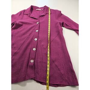 Soft surroundings M purple guaze seersucker button up tunic roll tab sleeve EUC