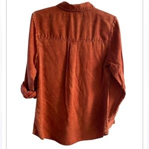 Soft surroundings button front shirt burnt Orange lyocell Medium