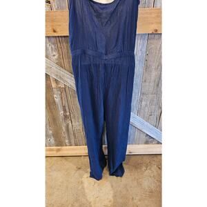 Soft surroundings crinkle rayon romper sz L navy blue elastic waist comfort flaw