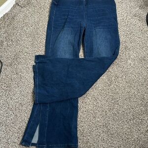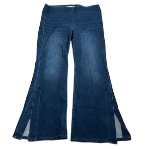 Soft surroundings flare leg slits hem pull on jeans size large blue