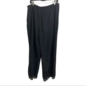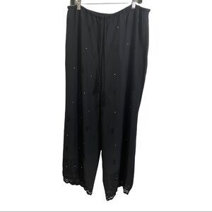 Soft surroundings black embellished with embroidery on bottom cuff elastic drawstring waist. Dress pants. High rise. Wide leg embellished with small rhinestone