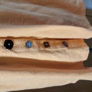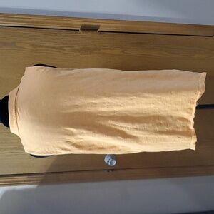 every button is different on this quirky soft surroundings cotton top sleeveless collared top with an asymmetric hem nice orange color. size xl