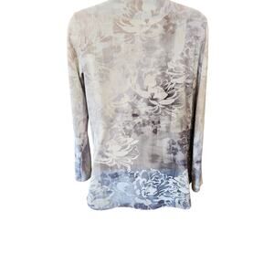 Soft surroundings size XS velour 1/4 zip floral grey white soft pullover sweater