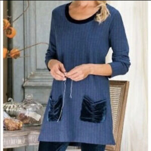 Soft surroundings sz.M herringbone Velvet Trim Pockets Long Tunic Top Peru Boho