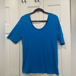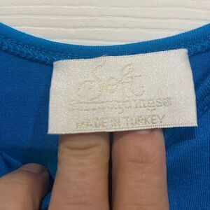 Soft surroundings women’s blue top made in turkey size L 96% rayon 4% spandex.