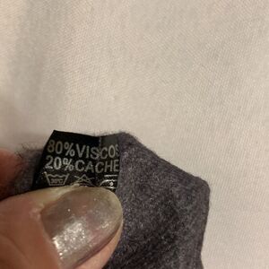 CachemIre & 80% Viscosa. Very soft and feels just like cashmere. Great quality. New in package and smoke free/pet free home