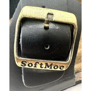 SoftMoc Womens Thong Sandals Leather Flats Brass Buckle Summer Black Size 10