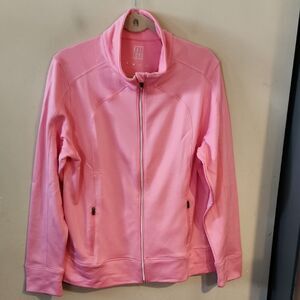 This bomber jacket in a soft pink hue is crafted from lightweight material, offering a relaxed fit and a standing collar for a casual yet stylish look. Its clean lines and simple design make it a versatile piece for any wardrobe. zip front pockets