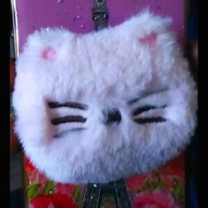 Soft Pink Fluffy Kitty Cat Face Design Phone Grip Holder