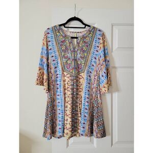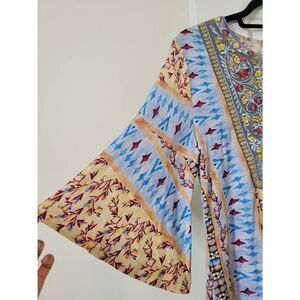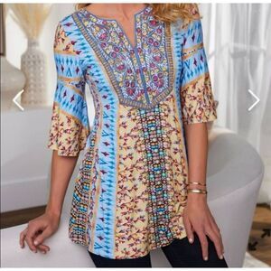 Soft Surrounding Fifi Embroidered Floral Tunic Top Colorful Bell Sleeve S