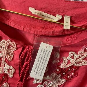 Soft Surrounding Floral Crush Beaded Embroidered Boho Tunic Embellished Top NWT