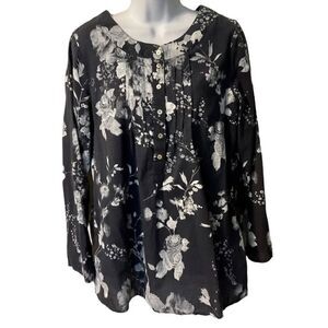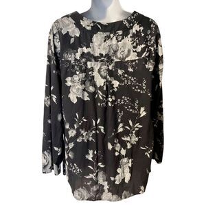 ✨Soft Surroundings Blue Gray Tuberosa Floral Print Roll Tab Sleeve Top✨