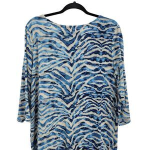Soft Surroundings Coverup Dress L Blue Animal Tiger Striped Cotton 3/4 Sleeve