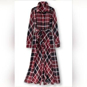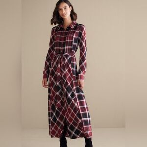 Soft Surroundings Gayle Tartan Plaid Belted Maxi Dress NWT