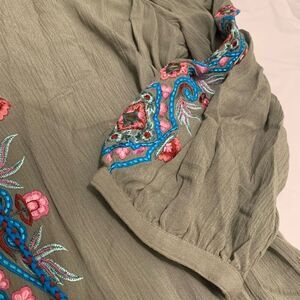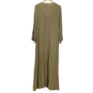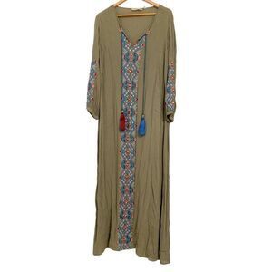 Soft Surroundings L boho loose fit embroidered long sleeves maxi dress tassels