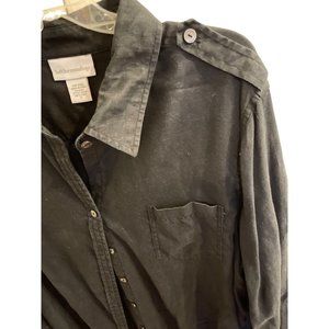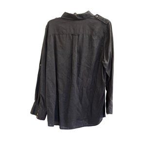 SoftSurroundings Linen Button Down Shirt Roll Tab Sleeve Blouse Black Size 1X Pl