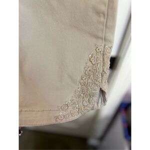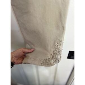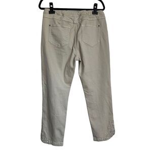 Soft Surroundings Pants Womens Size M Tan Pull-on Floral Embroidered Ankle Pants