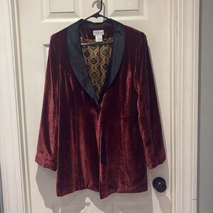 Soft Surroundings Red Velvet Savile Row Maroon Blazer Jacket Silk SZ Small