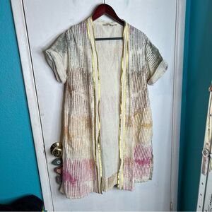 Soft Surroundings Rio Vista Cotton Cardigan Kimono Pastel Metallic Gold Sz small