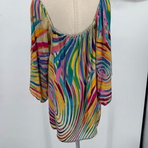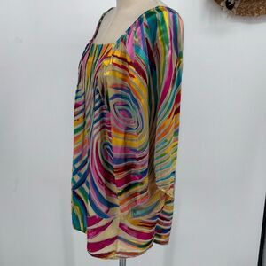 Soft Surroundings Square Neck Rainbow Prism 3/4 Sleeve Blouse size XL